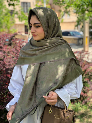 روسری نخ ابریشم ژاکارد بدون لمه قواره۱۴۰طرح سلین اجری رنگ