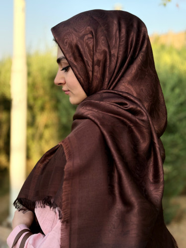 روسری نخ ابریشم ژاکارد لمه قواره۱۴۰رز قهوه ای پر رنگ