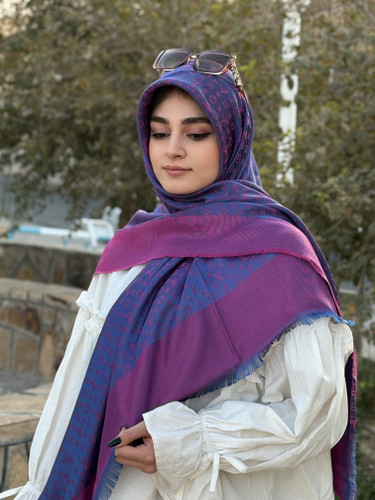 روسری نخ ابریشم ژاکارد لمه قواره۱۴۰ طرح لوویی