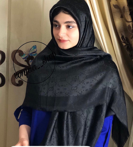 روسری نخ ابریشم ژاکارد لمه قواره ۱۴۰طرح گوچی مشکی