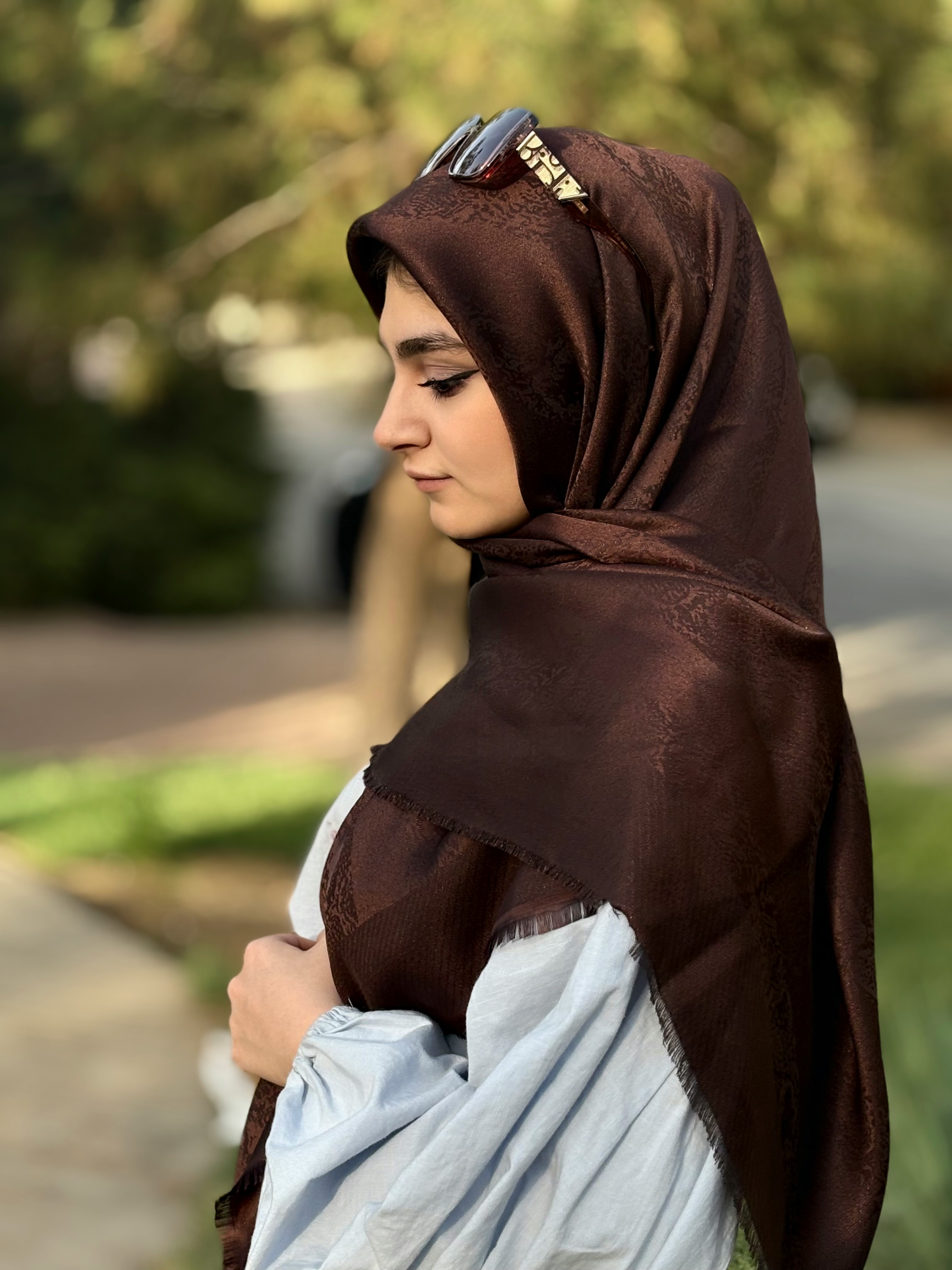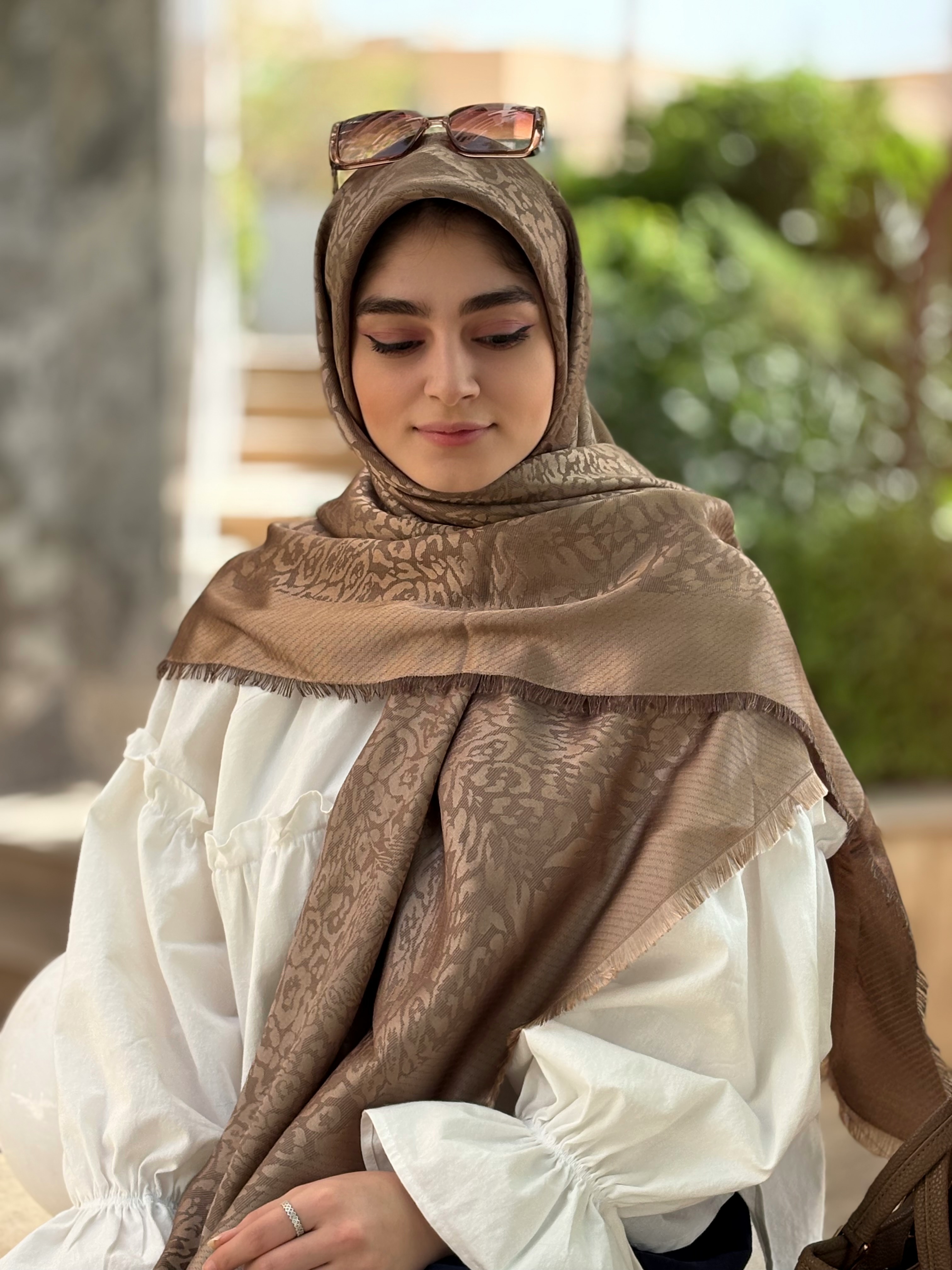 ناموجودروسری نخ ابریشم ژاکارد لمه قواره۱۴۰رز قهوه ای