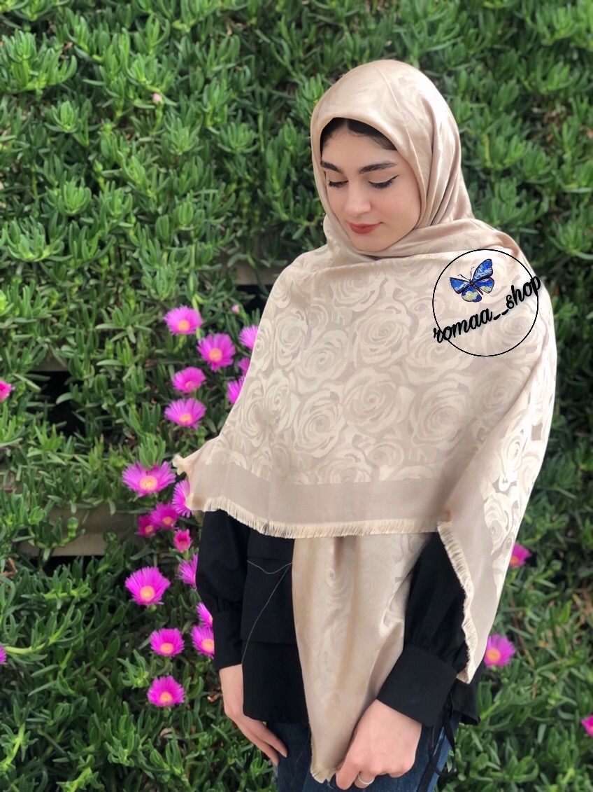 روسری نخ ابریشم ژاکارد لمه طرح گل رز قواره۱۴۰