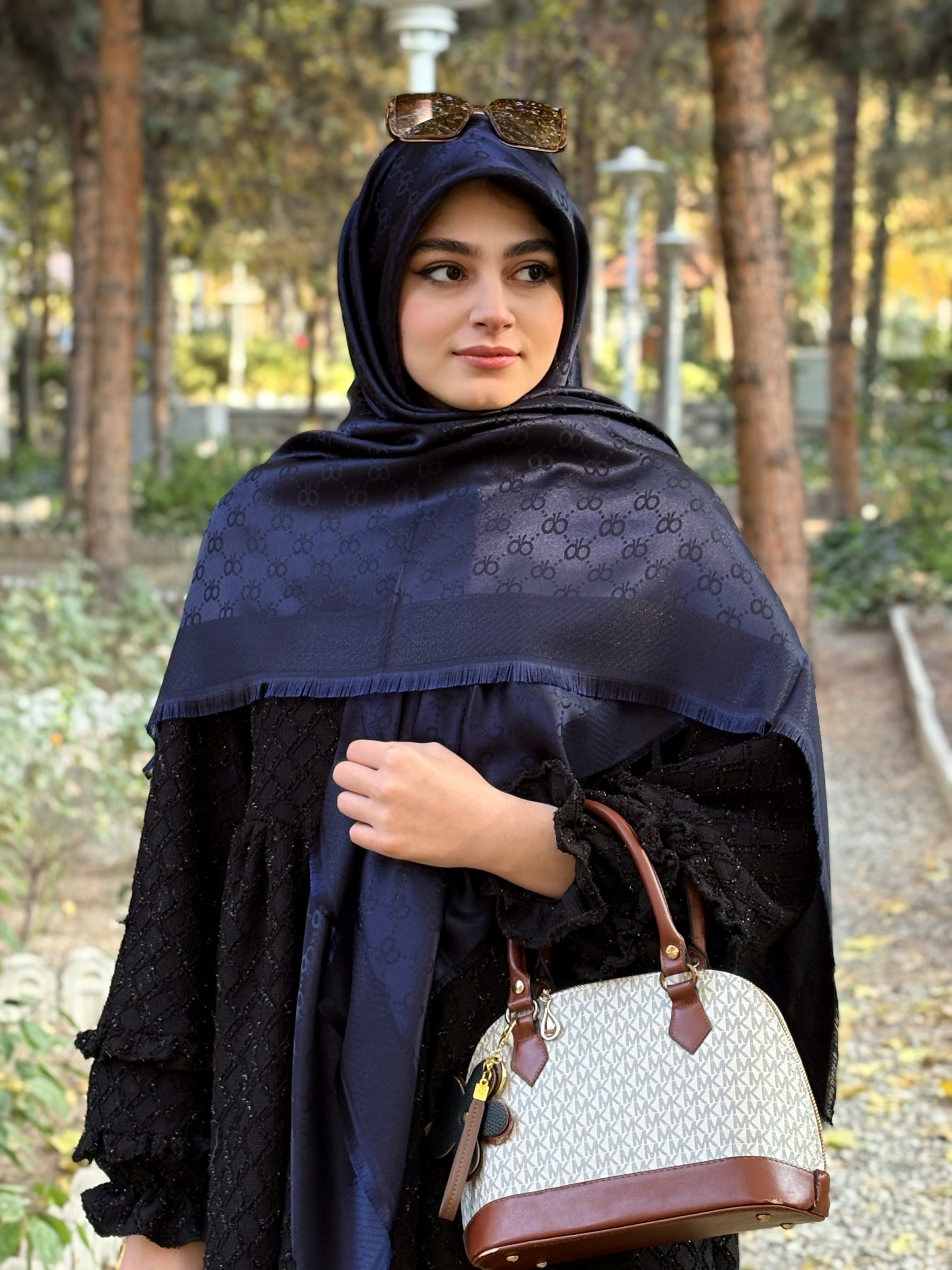 ناموجودروسری نخ ابریشم ژاکارد لمه قواره۱۴۰ طرح فرفوژه مشکی