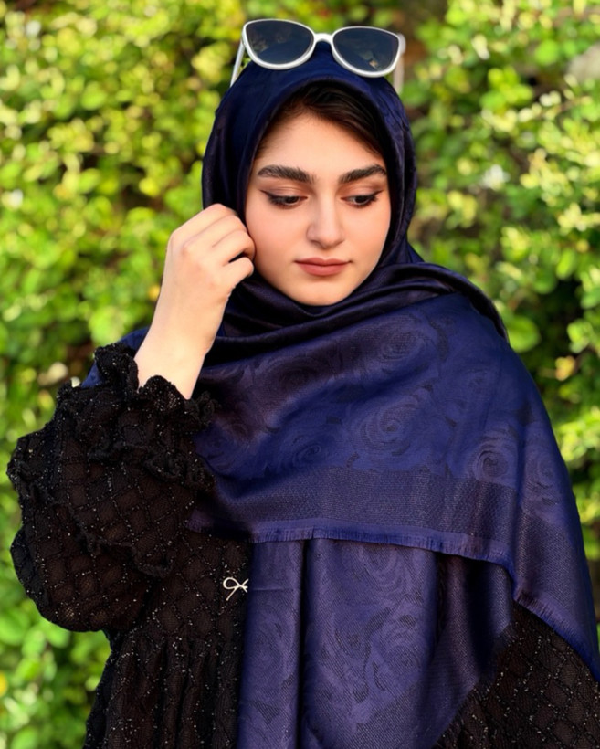 روسری نخ ابریشم ژاکارد لمه قواره۱۴۰سورمه ای گل رز
