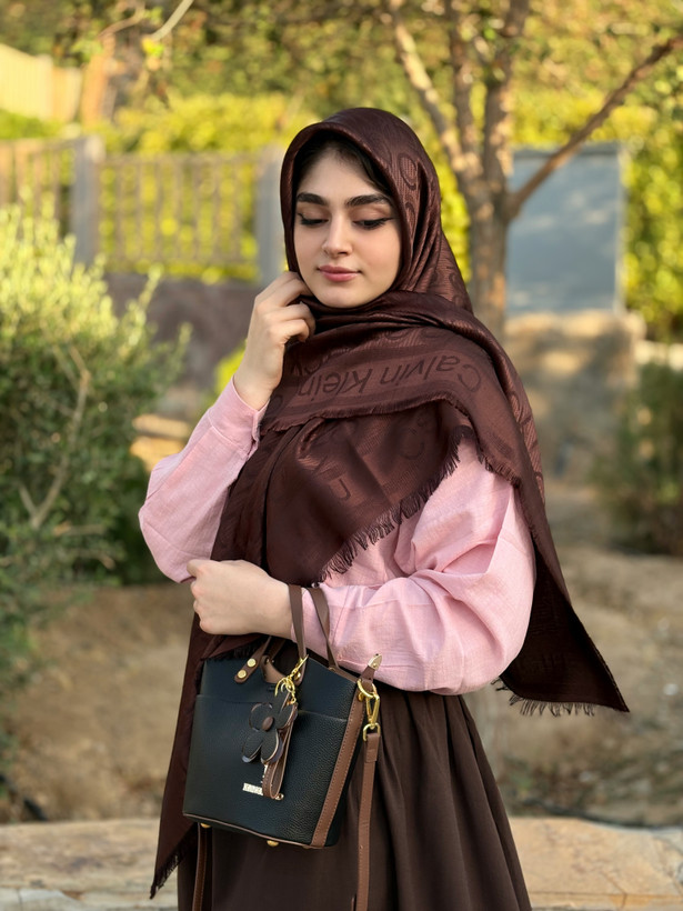 روسری نخ ابریشم ژاکارد لمه قواره۱۴۰طرح c.kقهوه ای