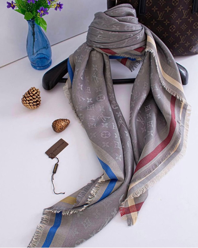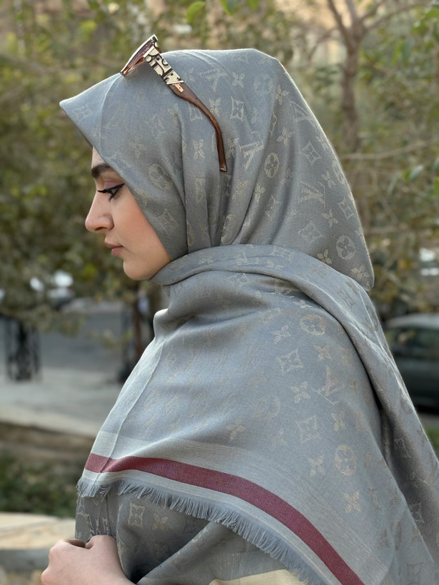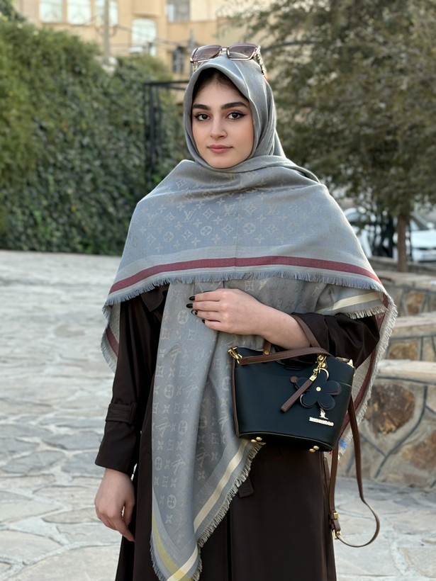 روسری نخ کشمیر وارداتی قواره ۱۴۰اورجینال رنگ طوسی