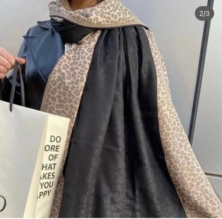 شال نخ ژاکارد دور پلنگی نسکافه ای
