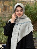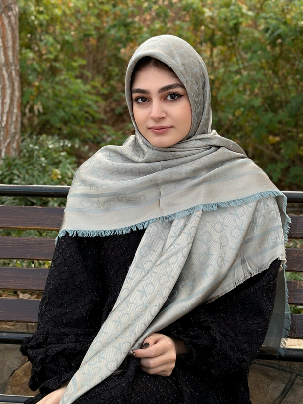 روسری نخ ابریشم ژاکارد لمه قواره ۱۴۰طرح ckطوسی ابی