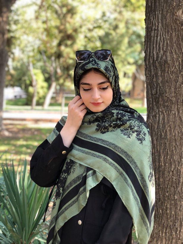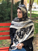 روسری نخ پنبه سیا اسکارف طرح جنگل قواره۱۳۵