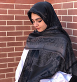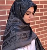 روسری نخ ابریشم ژاکارد لمه زغالی طوسی فرفوژه قواره۱۴۰