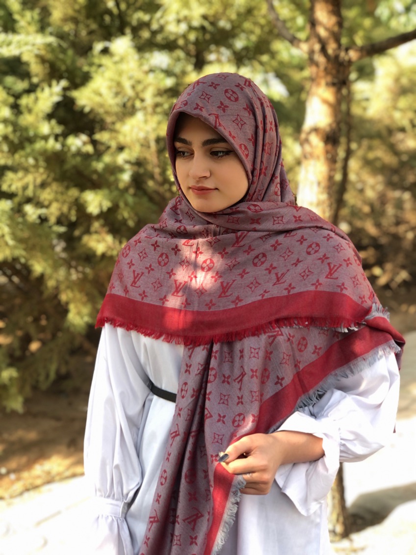 روسری نخ کشمیر وارداتی طرح ال وی قواره۱۴۰