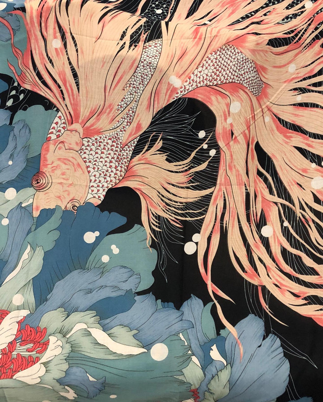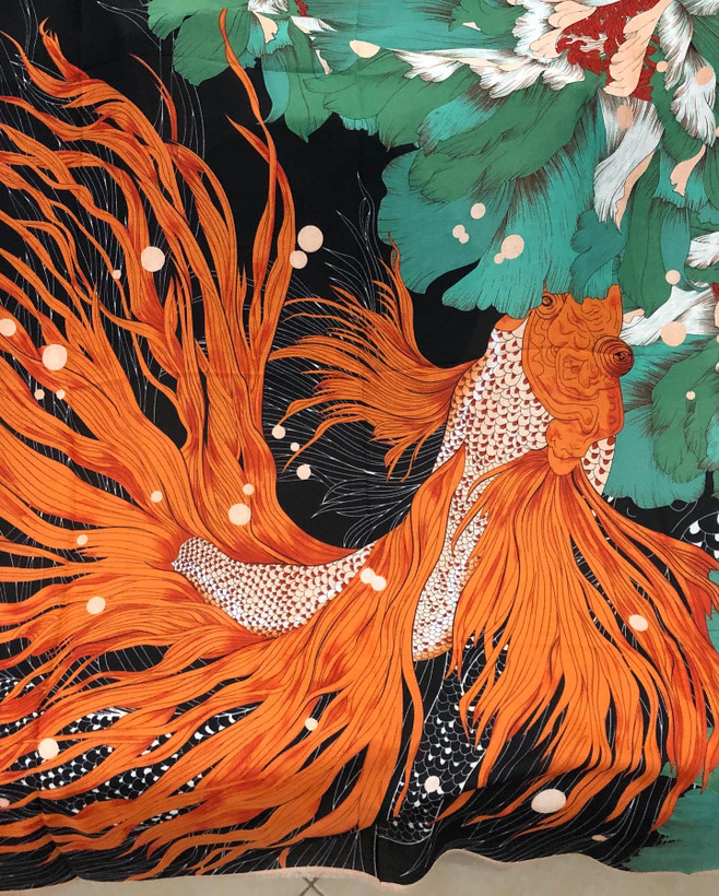 روسری نخ پنبه سیا اسکارف وارداتی طرح ماهی قواره۱۳۵
