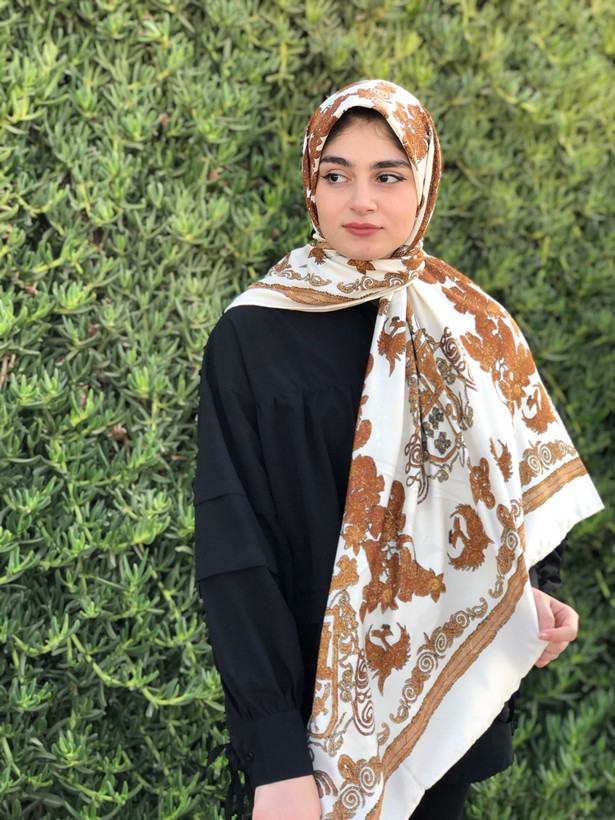 روسری ابریشم توییل قواره۱۴۰ دور دست دوز طرح ققنوس