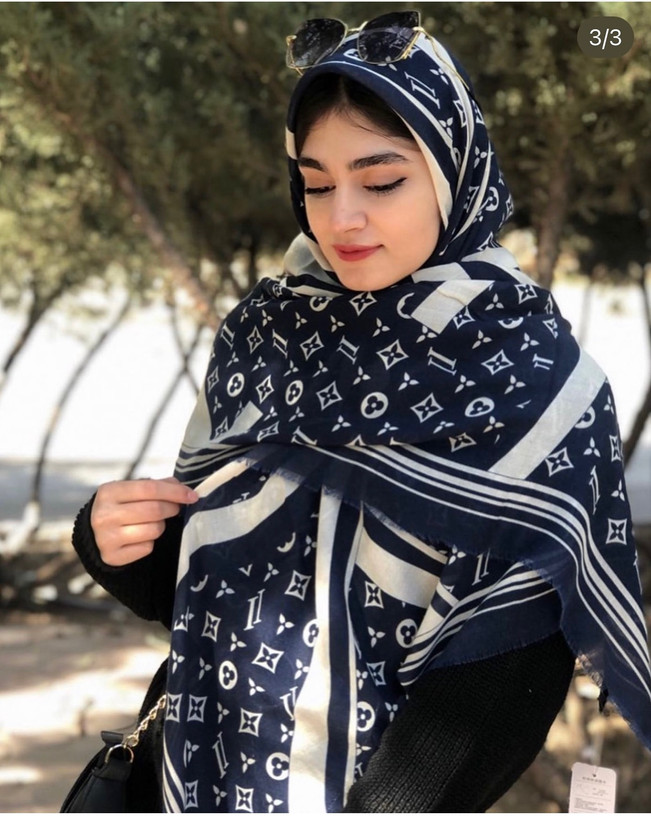 روسری نخ پنبه سیا اسکارف وارداتی قواره۱۳۵ طرح لوی ویتون