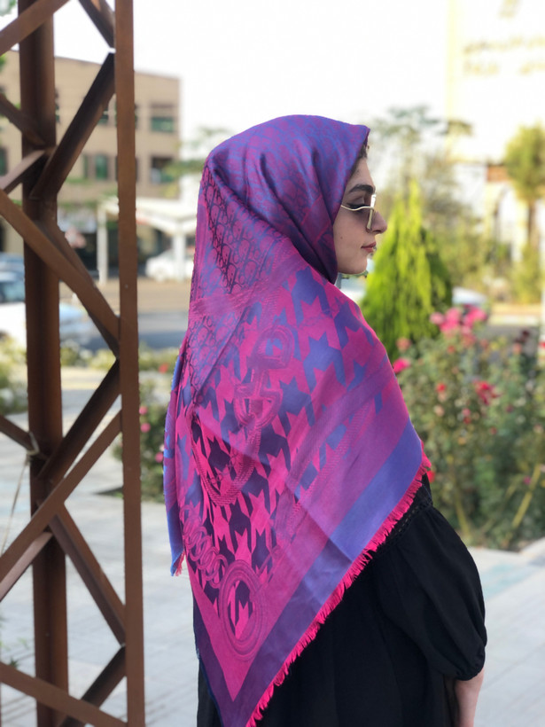 روسری نخ ابریشم ژاکارد بدون لمه قواره۱۴۰ رنگ سرخابی بنفش